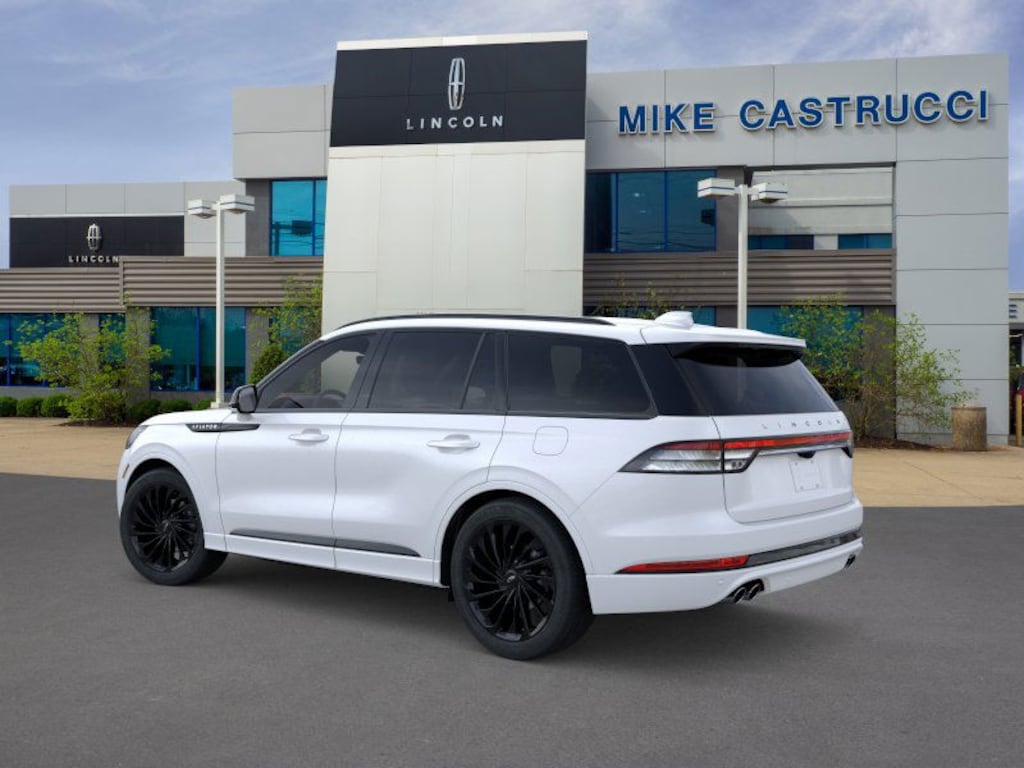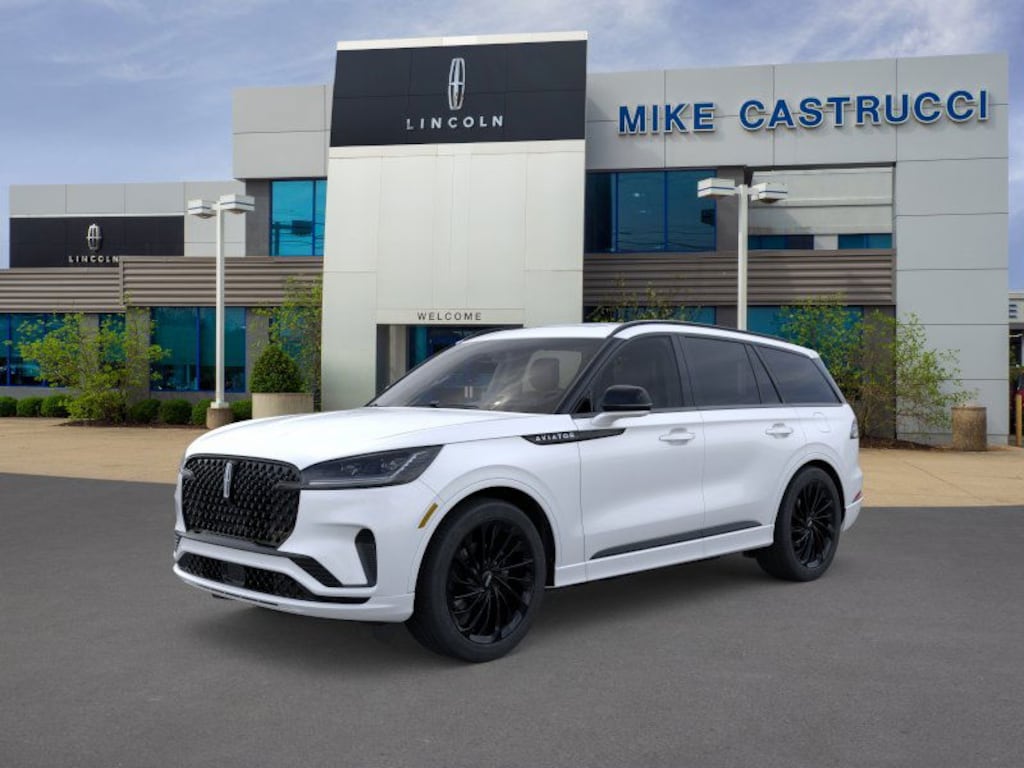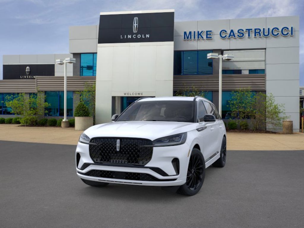 This 2025 Lincoln Aviator Reserve comes equipped with Dynamic Handling Package (Air Glide Suspension w/Dynamic Lower Entry), Equipment Group 201A (Lincoln BlueCruise Equipped (4-Years Included)), Jet Appearance Package (40/Mini Console/40 Dual Captain's Chairs, Black Exterior Elements, Body-Color Exterior Elements, and Wheels: 22" Black Aluminum w/Adaptive Suspension), 14 Speakers, 3rd row seats: split-bench, 4-Wheel Disc Brakes, ABS brakes, Adaptive suspension, Air Conditioning, All-Weather 1st & 2nd Row Floor Liners, Alloy wheels, AM/FM radio: SiriusXM, Apple CarPlay/Android Auto, Audio memory, Auto High-beam Headlights, Auto-dimming door mirrors, Auto-dimming Rear-View mirror, Automatic temperature control, Brake assist, Bumpers: body-color, Compass, Delay-off headlights, Driver door bin, Driver vanity mirror, Dual front impact airbags, Dual front side impact airbags, Electronic Stability Control, Four wheel independent suspension, Front anti-roll bar, Front Bucket Seats, Front Center Armrest, Front dual zone A/C, Front reading lights, Fully automatic headlights, Garage door transmitter, Heads-Up Display, Heated door mirrors, Heated front seats, Heated steering wheel, HVAC memory, Illuminated entry, Knee airbag, Leather steering wheel, Lincoln Digital Experience, Low tire pressure warning, Memory seat, Navigation system: Connected Navigation (1-year trial), Occupant sensing airbag, Outside temperature display, Overhead airbag, Overhead console, Panic alarm, Passenger door bin, Passenger vanity mirror, Power door mirrors, Power driver seat, Power Liftgate, Power moonroof: Panoramic Vista Roof, Power passenger seat, Power steering, Power windows, Premium Lthr Heated/Ventilated Fnt Captain's Chairs, Radio data system, Radio: Revel Audio System w/14 Speakers, Rain sensing wipers, Rear air conditioning, Rear anti-roll bar, Rear audio controls, Rear dual zone A/C, Rear reading lights, Rear window defroster, Rear window wiper, Remote keyless entry, Security system, SiriusXM, Speed control, Speed-Sensitive Wipers, Split folding rear seat, Spoiler, Steering wheel memory, Steering wheel mounted A/C controls, Steering wheel mounted audio controls, Tachometer, Telescoping steering wheel, Tilt steering wheel, Traction control, Trip computer, Turn signal indicator mirrors, Variably intermittent wipers, Ventilated front seats, and Wheels: 21" Bright-Machined Aluminum.