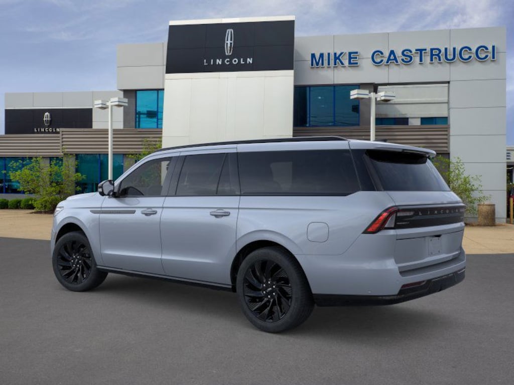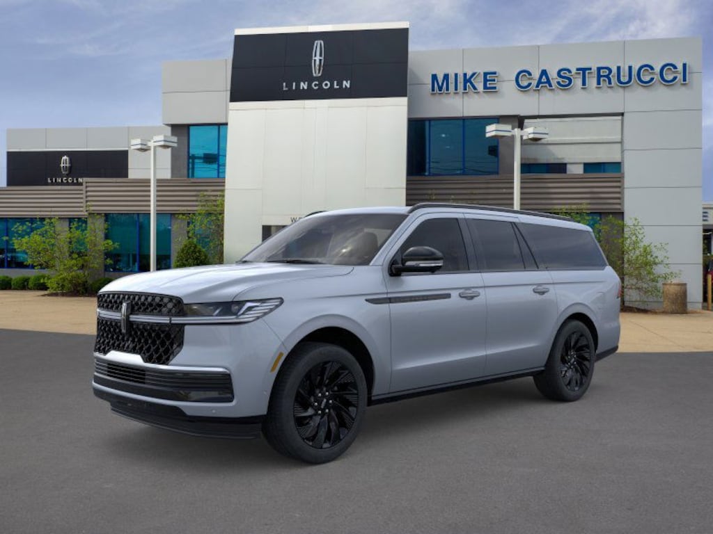 This 2025 Lincoln Navigator L Reserve comes equipped with Equipment Group 202A Reserve II, Heavy-Duty Trailer Tow Package (26mm Engine Radiator and Trailer Brake Controller), Jet Appearance Package (Black Accent Badge, Black Accent Interior Pack, Black Beltline Molding, Black Painted Roof Rails, Front Bumper Fascia, Lincoln Lit Star, Unique Lincoln Grille Pillar Black Surround, and Wheels: 22" High-Gloss Ebony Aluminum), 4WD, P2 Premium Black Onyx Leather, 28 Speakers, 2nd Row Heated & Ventilated Dual Captain's Chair, 3rd row seats: split-bench, 4-Wheel Disc Brakes, ABS brakes, Adaptive suspension, Adjustable pedals, Air Conditioning, All-Weather Flr Liners w/Fr & Rr Carpet Floor Mats, Alloy wheels, AM/FM radio: SiriusXM with 360L, Apple CarPlay/Android Auto, Audio memory, Auto High-beam Headlights, Auto Htd & Ventilated Premium Lthr Captain's Chair, Auto Start-Stop Technology, Auto tilt-away steering wheel, Auto-dimming door mirrors, Auto-dimming Rear-View mirror, Auto-leveling suspension, Automatic temperature control, Brake assist, Bumpers: body-color, Compass, Delay-off headlights, Driver door bin, Driver vanity mirror, Driver's Seat Mounted Armrest, Dual front impact airbags, Dual front side impact airbags, Electronic Stability Control, Emergency communication system: 911 Assist, Exterior Parking Camera Rear, Four wheel independent suspension, Front anti-roll bar, Front Bucket Seats, Front dual zone A/C, Front reading lights, Fully automatic headlights, Garage door transmitter, Head restraints memory, Heated door mirrors, Heated front seats, Heated rear seats, Heated steering wheel, HVAC memory, Illuminated entry, Leather steering wheel, Lincoln Connect, Lincoln Premium Connectivity, Low tire pressure warning, Memory seat, Navigation system: Connected Navigation (1-year trial), Occupant sensing airbag, Outside temperature display, Overhead airbag, Overhead console, Panic alarm, Passenger door bin, Passenger seat mounted armrest, Passenger vanity mirror, Pedal memory, Power adjustable front head restraints, Power adjustable rear head restraints, Power door mirrors, Power driver seat, Power moonroof, Power passenger seat, Power steering, Power windows, Radio data system, Radio: Revel Ultima 3D AM/FM/HD Audio System, Rain sensing wipers, Rear air conditioning, Rear anti-roll bar, Rear audio controls, Rear reading lights, Rear window defroster, Rear window wiper, Reclining 3rd row seat, Remote keyless entry, Security system, SiriusXM w/360L, Speed control, Speed-sensing steering, Speed-Sensitive Wipers, Split folding rear seat, Spoiler, Steering wheel memory, Steering wheel mounted audio controls, Tachometer, Telescoping steering wheel, Tilt steering wheel, Traction control, Trip computer, Turn signal indicator mirrors, Variably intermittent wipers, Ventilated front seats, and Wheels: 22" Dark Tarnished Aluminum.