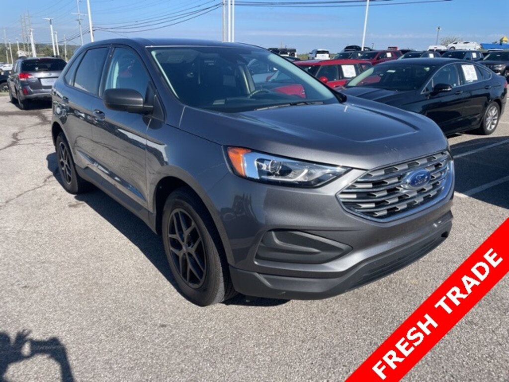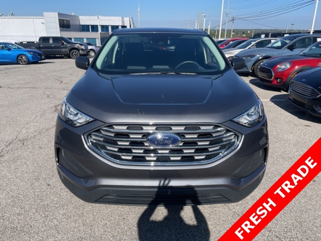 This 2022 Ford Edge SE comes equipped with Equipment Group 100A, AWD, 3.80 Axle Ratio, 4-Wheel Disc Brakes, 6 Speakers, ABS brakes, Air Conditioning, Alloy wheels, AM/FM radio: SiriusXM with 360L, Auto High-beam Headlights, Automatic temperature control, Brake assist, Bumpers: body-color, Cloth Bucket Seats, Compass, Delay-off headlights, Driver door bin, Driver vanity mirror, Dual front impact airbags, Dual front side impact airbags, Electronic Stability Control, Emergency communication system: SYNC 4 911 Assist, FordPass Connect, Four wheel independent suspension, Front & Rear Floor Liners w/o Carpet Mats, Front anti-roll bar, Front Bucket Seats, Front Center Armrest w/Storage, Front dual zone A/C, Front reading lights, Fully automatic headlights, Illuminated entry, Knee airbag, Low tire pressure warning, Occupant sensing airbag, Outside temperature display, Overhead airbag, Overhead console, Panic alarm, Passenger door bin, Passenger vanity mirror, Power door mirrors, Power steering, Power windows, Radio: AM/FM Stereo/MP3 Capable, Rear anti-roll bar, Rear reading lights, Rear seat center armrest, Rear window defroster, Rear window wiper, Remote keyless entry, SiriusXM w/360L, Speed control, Speed-Sensitive Wipers, Split folding rear seat, Spoiler, Steering wheel mounted audio controls, SYNC 4A w/Enhanced Voice Recognition, Tachometer, Telescoping steering wheel, Tilt steering wheel, Traction control, Trip computer, Variably intermittent wipers, Wheels: 18" Sparkle Silver-Painted Aluminum, and Wheels: 18" Split-Spoke Sparkle Silver-Painted.